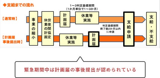 ④仕事が少なくなってしまった影響で従業員を1日または半日、あるいは事業所における部署・部門ごとや、職種・仕事の種類、勤務体制によるまとまり等一定のまとまりで行われる短時間休業させ、休業手当を支払ったこと←NEW:通常は事業所の従業員一斉に短時間休業させなければならない