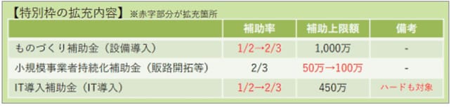 「特別枠」とは新型コロナウイルス感染症が事業環境に与える影響を乗り越えるために前向きな投資を行う事業者を対象に、補助率または補助上限を引き上げた枠のことです。